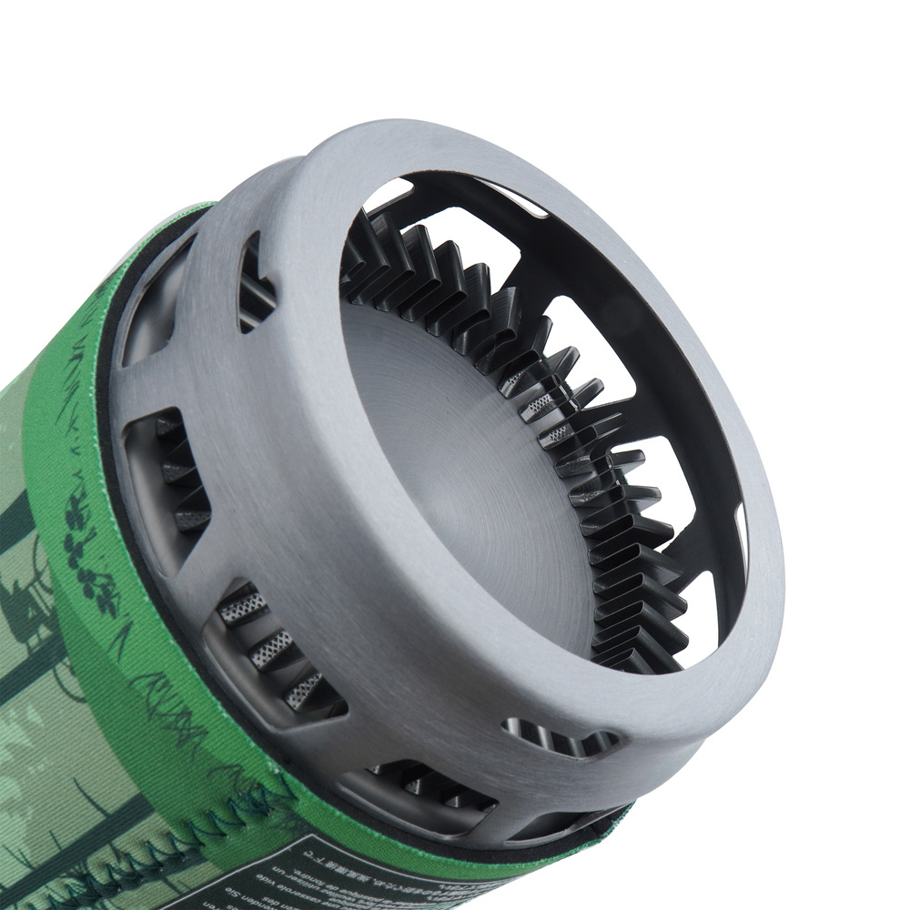 Der Gaskocher besteht aus fünf Teilen: Topf mit wärmeisolierendem Deckel und Klappgriff, 1 L Fassungsvermögen mit Deckel, Kartuschenhalter, Schraub- auf Brenner, Ständer mit Zünder, Ventil und Flammenregler und zusätzlicher Metallständer für den Topf. Der Kocher hat einen eingebauten Gasminderer und einen speziellen Knopf, der für die Piezo-Zündung verantwortlich ist, die einen Funken erzeugt, der Gasdämpfe entzündet.