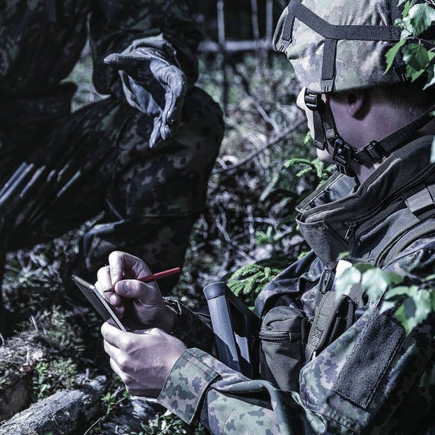 Sie sind ein ideales Mittel zur Aufzeichnung von Notizen während der Ausbildung, der Aufklärung oder bei Einsätzen. Sie eignen sich auch gut für andere Berufe, die im Freien arbeiten, sowie für den privaten Gebrauch von Personen, die sich gerne in der Natur aufhalten.