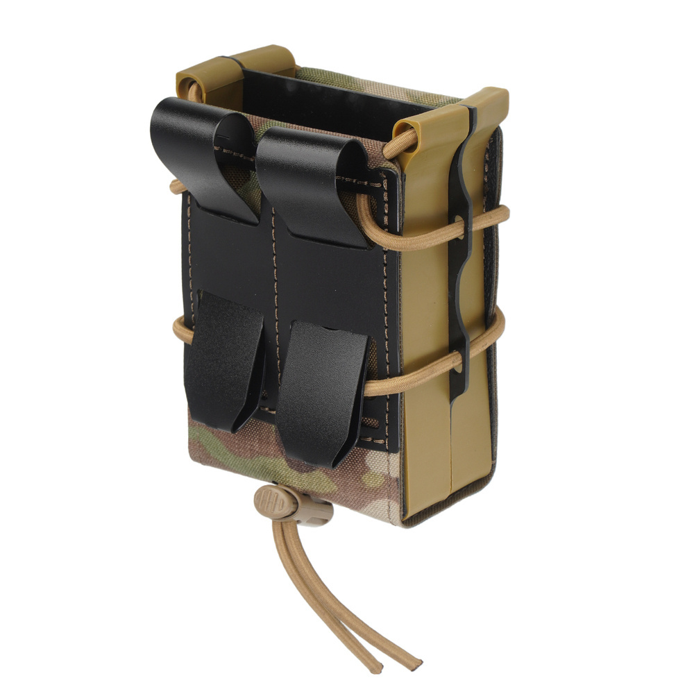 Die Rifle Pouch DFMR von Templars Gear ist eine doppelt Gewehrtasche mit offenem Design. Kompatibel mit AR/AK-, M4-, SIG-, SR2-, M14-Schusswaffen und Airsoft-Waffenmagazinen. Die Gewehrtasche DFMR hat eine versteifte Struktur, deren Seiten und Vorderseite aus 500D Cordura bestehen, der Rahmen aus 2 mm Kydex und die Innenseite mit einer rutschfesten Textur versehen ist.