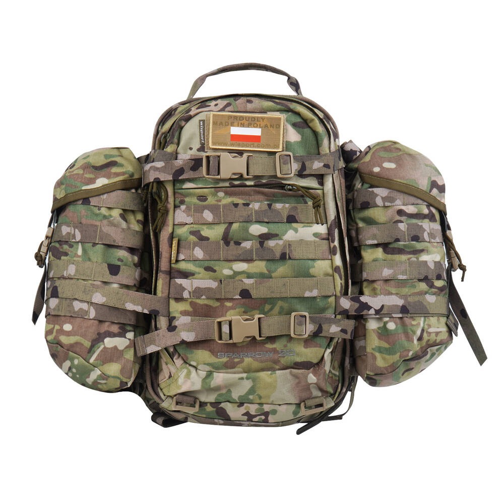Wisport Sparrow 20 II Rucksack-Set mit zwei Seitentaschen mit einem Fassungsvermögen von je 5 Litern - in Camouflage Multicam