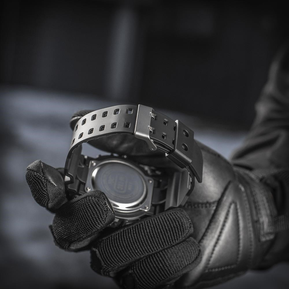 Die stilvolle taktische Sportuhr von M-Tac ist eine Uhr mit modernem Design und umfangreicher Funktionalität. Sie wird sowohl von körperlich aktiven Menschen als auch von Sport- und Outdoor-Enthusiasten geschätzt werden. Die robuste, stoßfeste Polykarbonatkonstruktion und das kratzfeste Mineralglas sorgen für Langlebigkeit und Zuverlässigkeit unter allen Bedingungen. Große Tasten am Gehäuse ermöglichen die Bedienung auch mit taktischen Handschuhen.