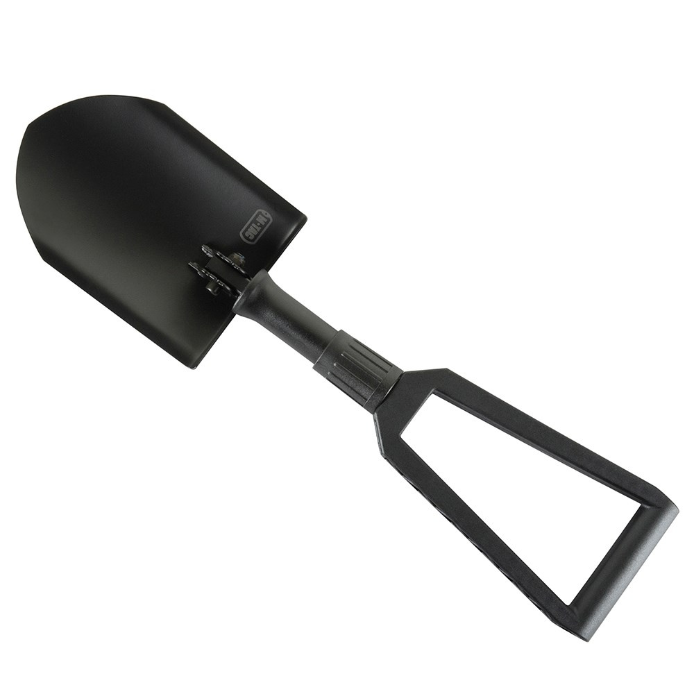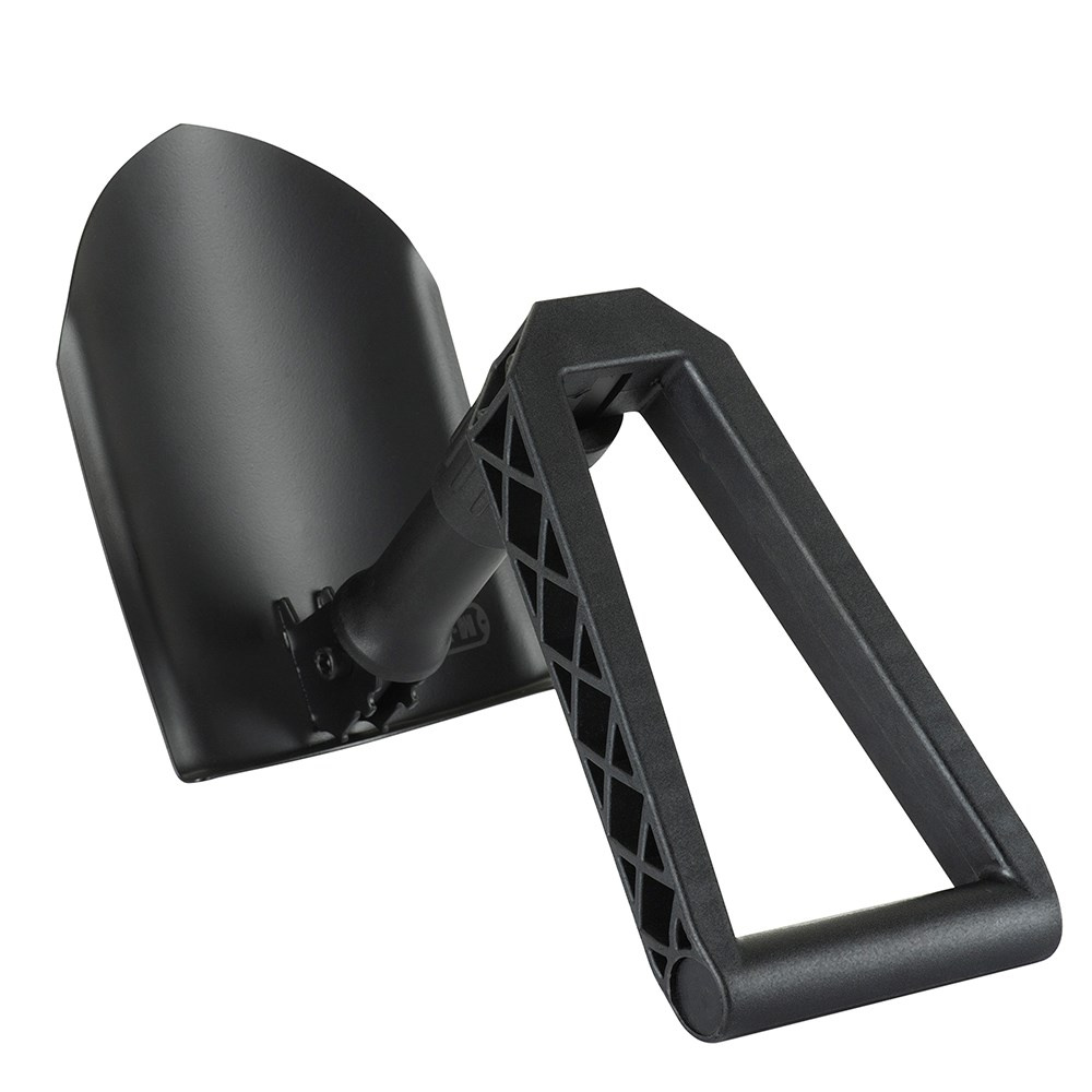 Durch das Anbringen der Klinge im rechten Winkel zum Griff in Form einer Schaufel ist ein effektives Graben möglich. Der Griff ist aus Kunststoff gefertigt. Er wird mit einer Tasche aus 600D-Polyester mit PVC-Beschichtung für den sicheren Transport geliefert. Die Hülle hat Riemen, mit denen sie leicht an einem Rucksack befestigt werden kann.