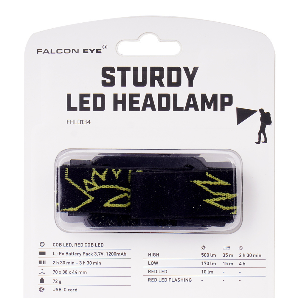 Falcon Eye - Stirnlampe Sturdy - 500lm - USB-C - Schwarz - FHL0134