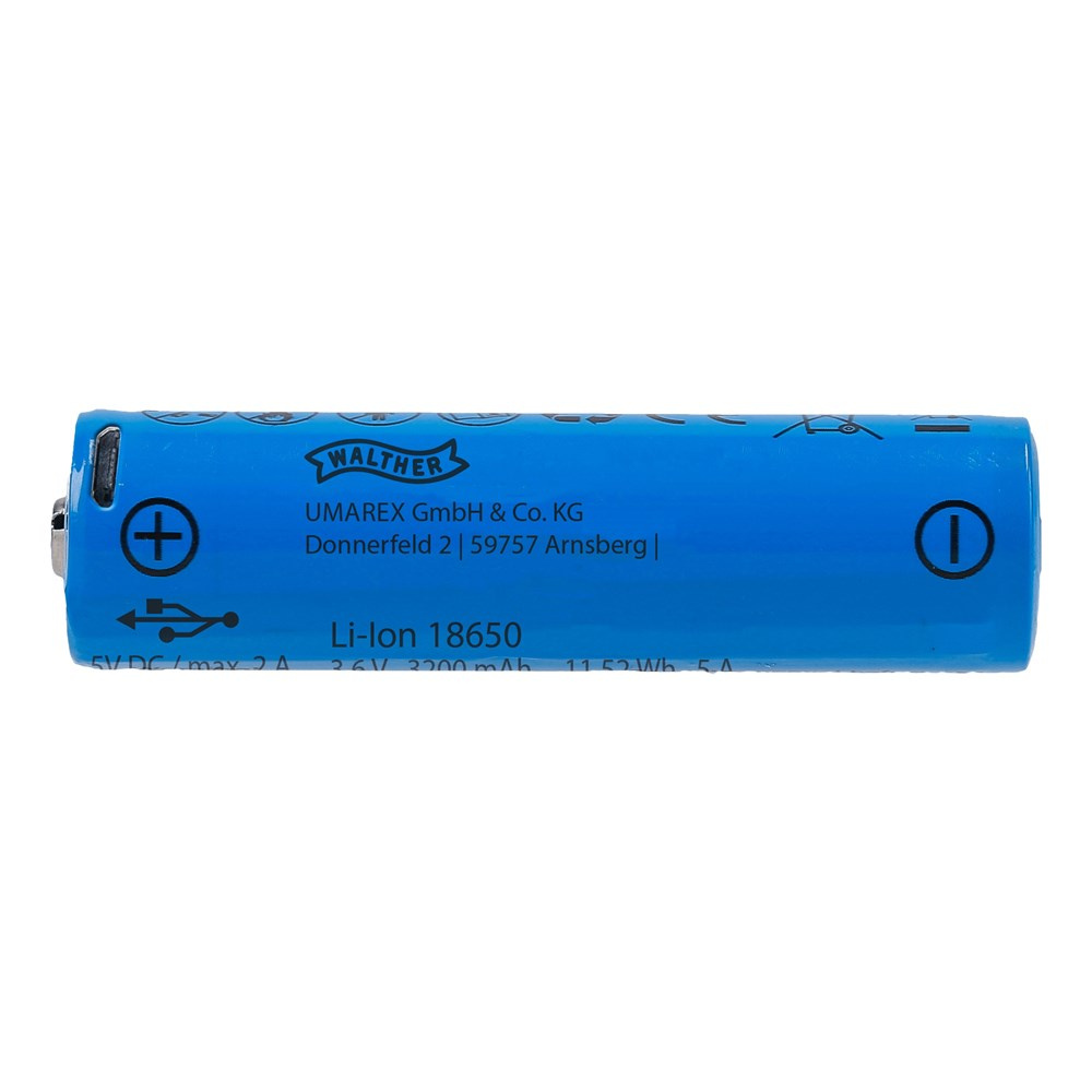 Walther - ICR 18650 Wiederaufladbare Batterie - 3,7 V - USB - 3200 mAh - 3.7133
