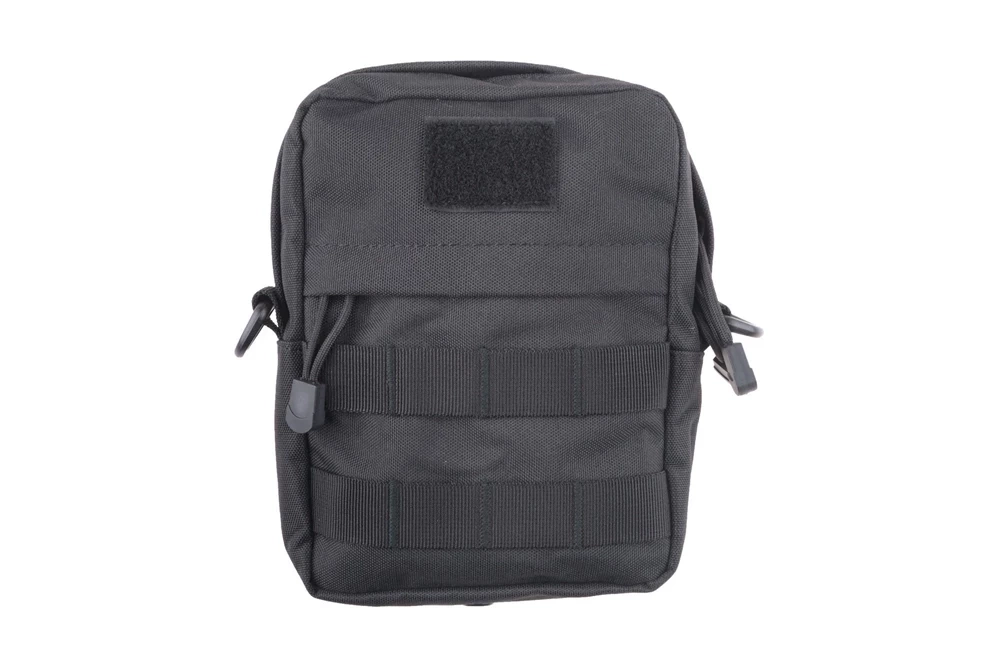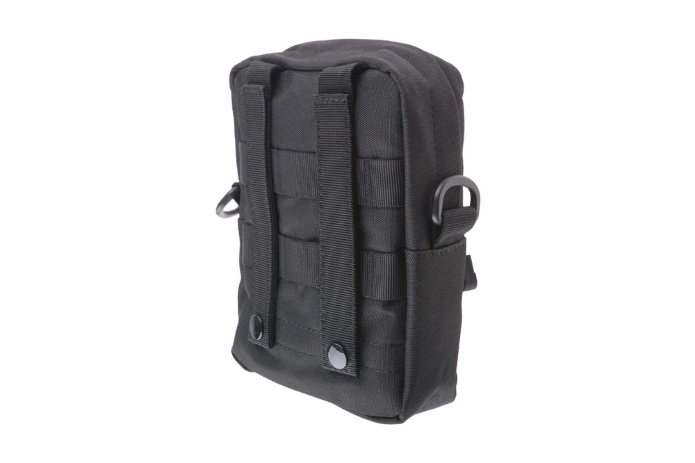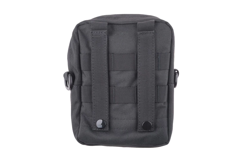 Die Tasche wurde in zwei Taschen unterteilt, die mit Reißverschlüssen geschlossen werden. Auf der Innenseite wurde sie mit einem gummierten Material überzogen, so dass sie ein hohes Maß an Wasserbeständigkeit aufweist. Im unteren Teil befindet sich ein Drainageloch, um die Ansammlung von Feuchtigkeit zu verhindern. Die MOLLE-kompatible Befestigung ermöglicht eine einfache Anbringung an einer taktischen Weste oder einem Rucksack.