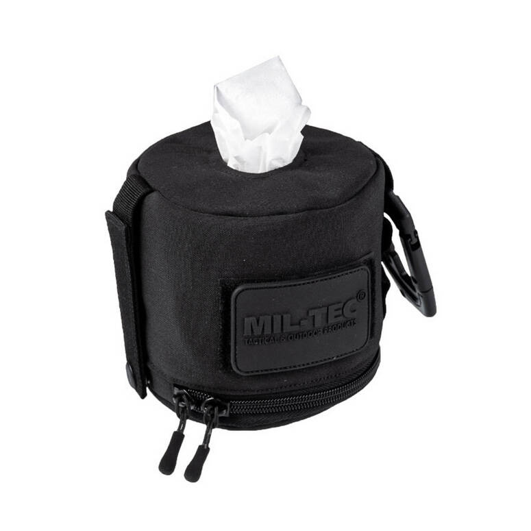 • Eine Tasche für die bequeme Aufbewahrung von Taschentüchern oder Toilettenpapier. Hergestellt aus strapazierfähigem Polyester und Polyurethanschaum. MOLLE-Befestigungssystem. Farbe: Schwarz.