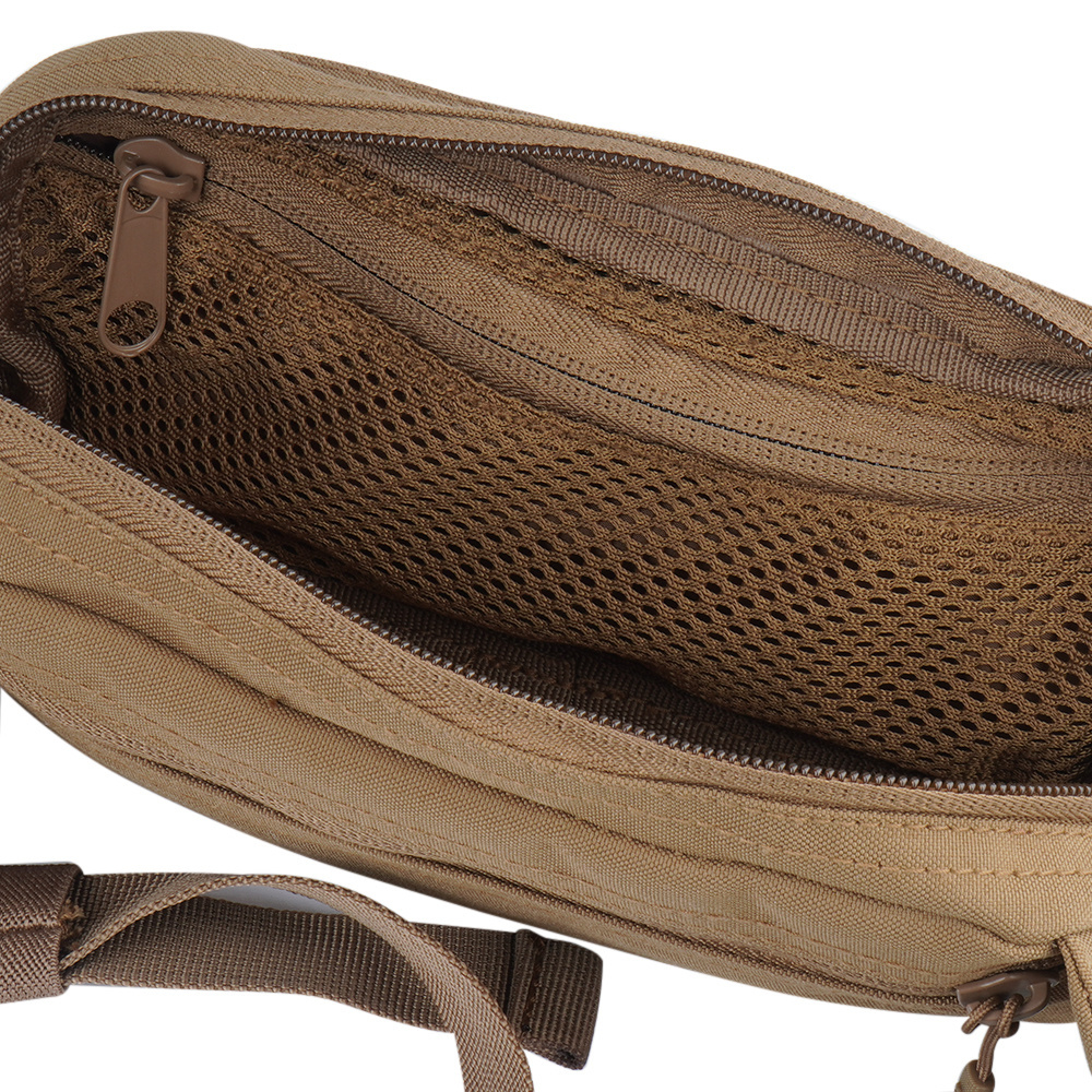 Eine Gürteltasche, in der sich die wichtigsten Gegenstände wie Brieftasche, Taschenlampe, Multitool und viele andere erfolgreich transportieren lassen. Von unschätzbarem Wert sowohl bei der aktiven Freizeitgestaltung als auch im Alltag. Vier geräumige Reißverschlusstaschen, das Hauptfach ist durch eine Trennwand mit Gummibändern in zwei Fächer unterteilt.