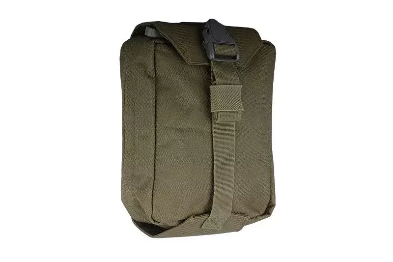 Der Erste-Hilfe-Kasten besteht aus zwei Komponenten: zum einen aus einer Trageplatte, die mit Hilfe des MOLLE-Systems an der Ausrüstung befestigt wird, zum anderen aus dem eigentlichen Erste-Hilfe-Kasten. Sein Inhalt wird durch ein Band mit einer Fastex-Schnalle gesichert. Er ist mit dem MOLLE/PALS-Befestigungssystem ausgestattet, wodurch er an Rucksäcken und taktischen Westen befestigt werden kann.