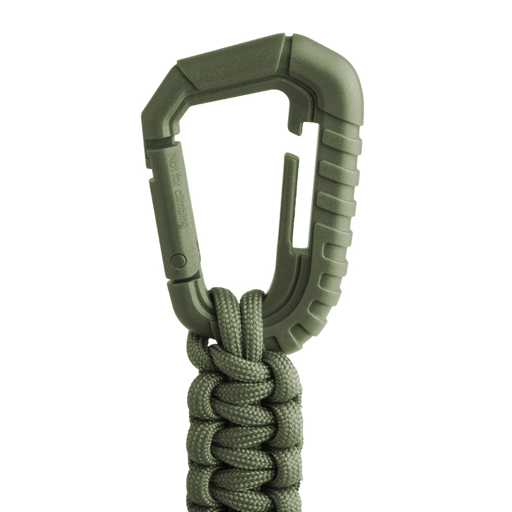 • Der Schlüsselring ist mit einem Karabinerhaken mit Paracord ausgestattet. Die Schnalle ist aus Kunststoff gefertigt. Ideal für EDC. Farbe: Grün.