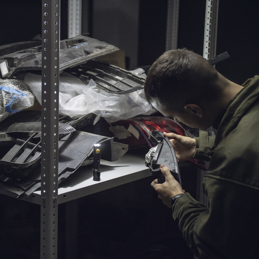 Die Taschenlampe wird von einem langlebigen 18650 Lithium-Ionen-Akku mit einer Kapazität von 3200 mAh angetrieben, der für bis zu 28 Stunden im Hauptmodus ausreicht. Es besteht die Möglichkeit, die Lampe mit einem 18650-Akku mit 3500 mAh oder zwei CR123A-Batterien zu betreiben. Der Akku kann nicht in der Taschenlampe aufgeladen werden.
