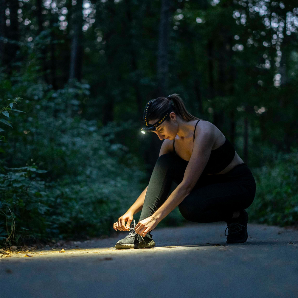 - Rotationsmöglichkeit der Taschenlampe im Stirnband