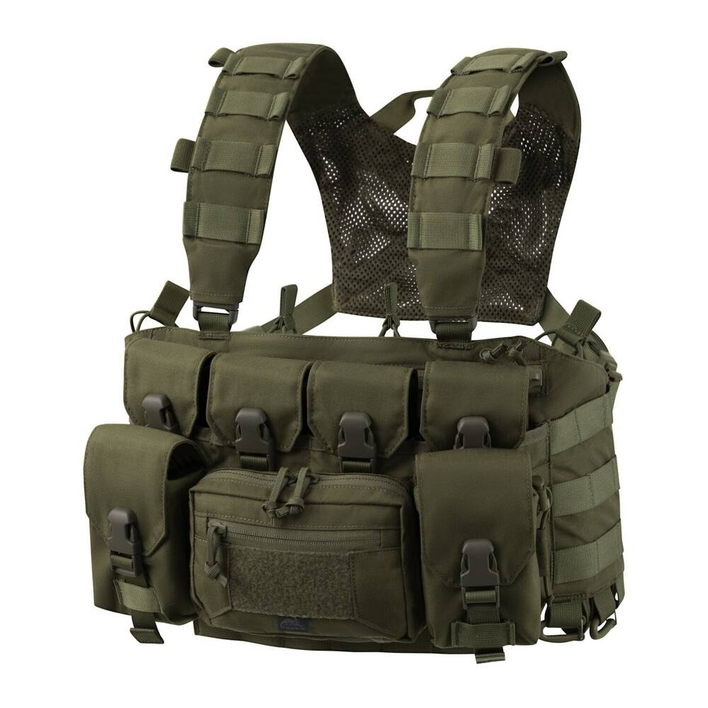 Die klassische Chest Rig Weste in einer erweiterten Variante. Dieser Westentyp hat seine Tradition im Kalten Krieg und bei asymmetrischen Operationen, bei denen es wichtig ist, eine große Menge an Ausrüstung in relativ leichter Ausrüstung zu tragen. Sie eignet sich hervorragend für Gelände mit begrenztem Bewegungsspielraum, wie z. B. bei CQB. Darüber hinaus, nach einer weiteren Erweiterung, auch bei Patrouillen und Aufklärungsaufgaben.