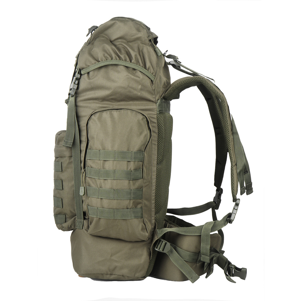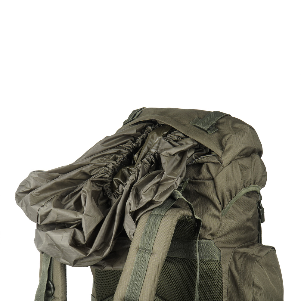 Mit einem Fassungsvermögen von 65 Litern und einem großen Hauptfach bietet der Rucksack ausreichend Platz für Gegenstände, die nicht der Standardgröße entsprechen, wie zum Beispiel Wanderkocher. Der Rucksack besteht aus 600D-Polyester mit dichtem Fasergeflecht, beschichtet mit PU-Polymer mit wasserabweisenden Eigenschaften. Bei extremeren Bedingungen kann der Rucksack mit einer integrierten Abdeckung in der oberen Tasche abgedeckt werden.