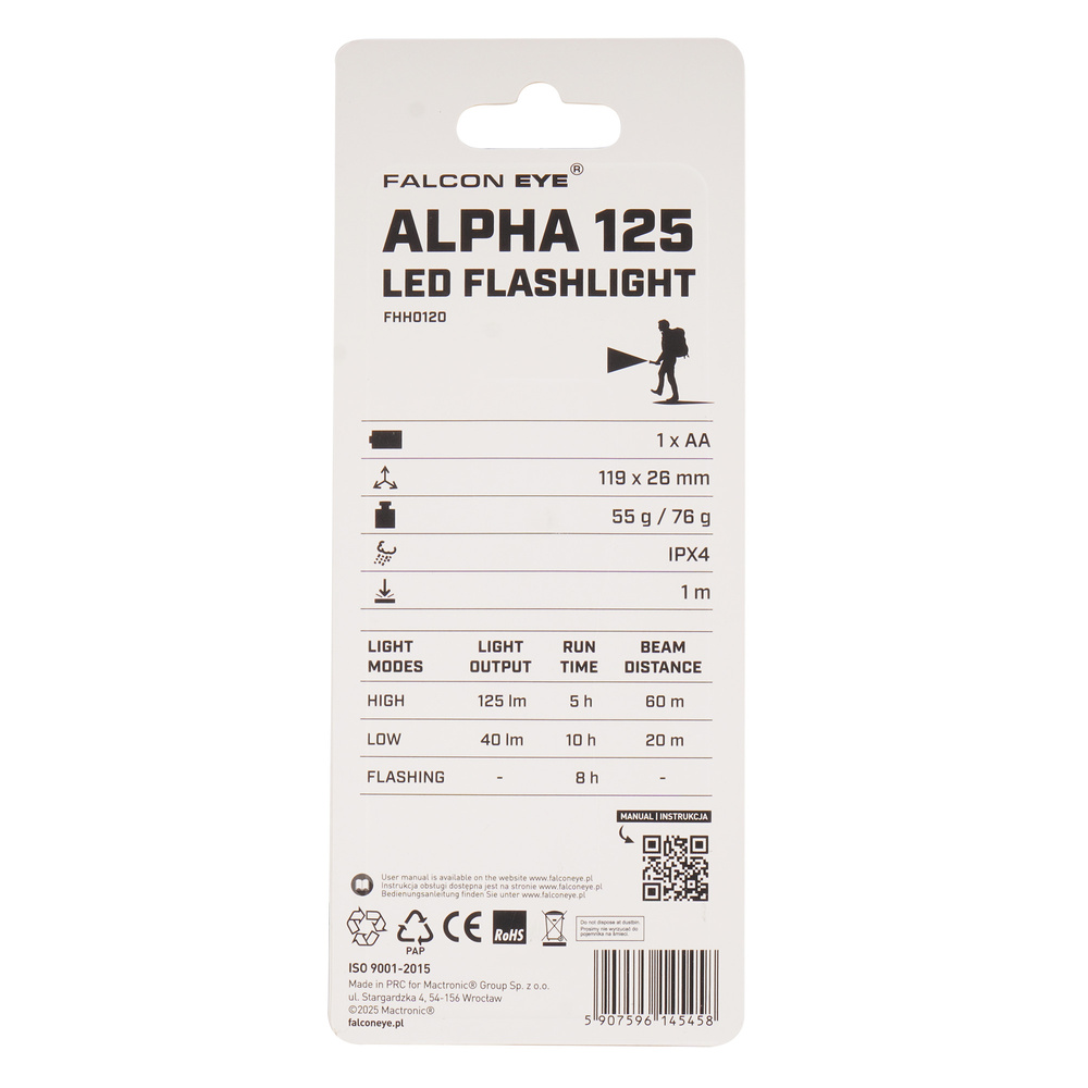 Hand-Taschenlampe Alpha 125 Blitzlicht Fokus 125 lm Schwarz Falcon Eye FHH0120